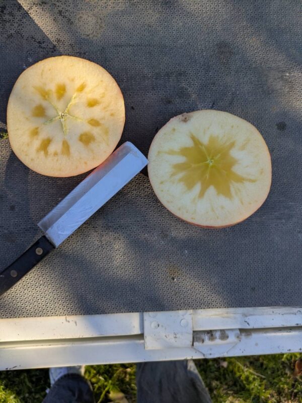 太陽の光をたっぷり浴び、糖度も高く蜜も入った林檎です。