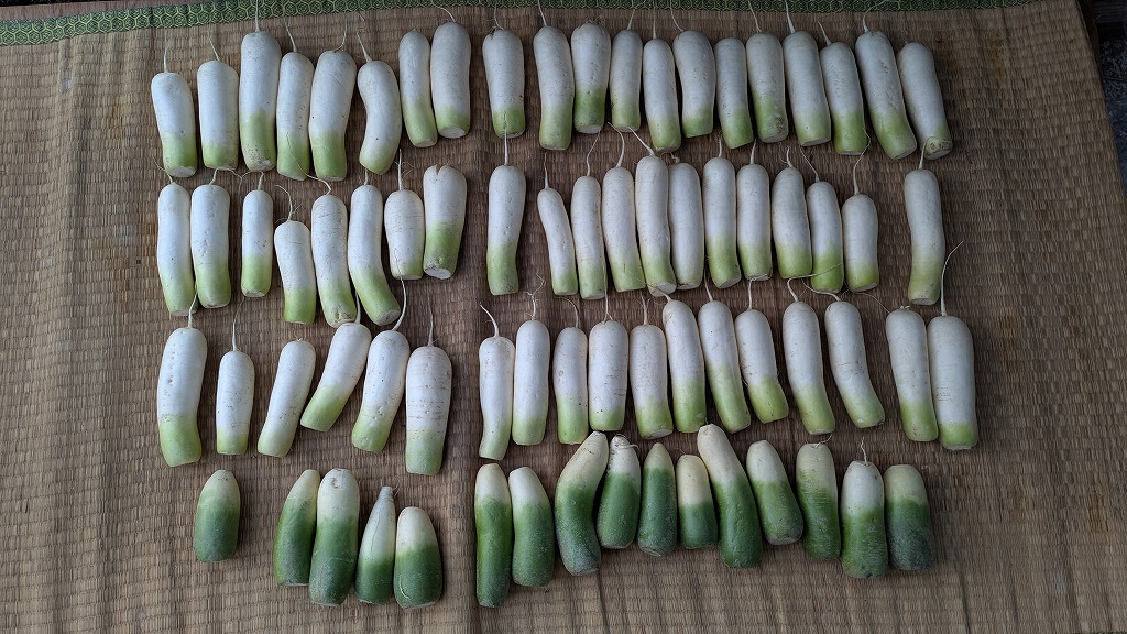今年は漬物を作ってみることにしました。収穫した戸隠大根、頂いた飯綱青大根、合わせて70本ちょっと。毎年作っている地域のお母さんに教えて頂いて作業しました。出来上がりまでひと月、今から楽しみです。