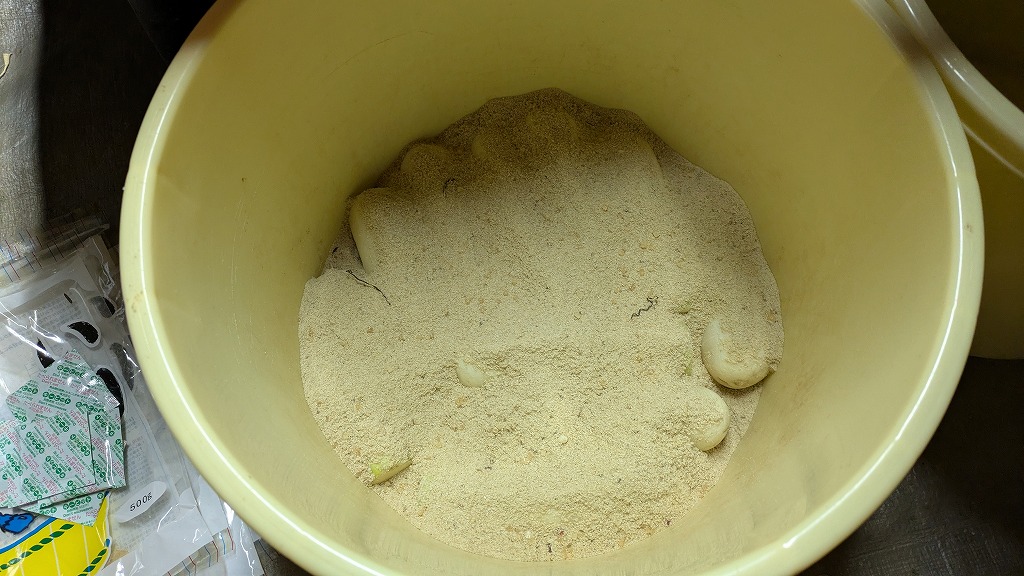樽に糠で漬けました