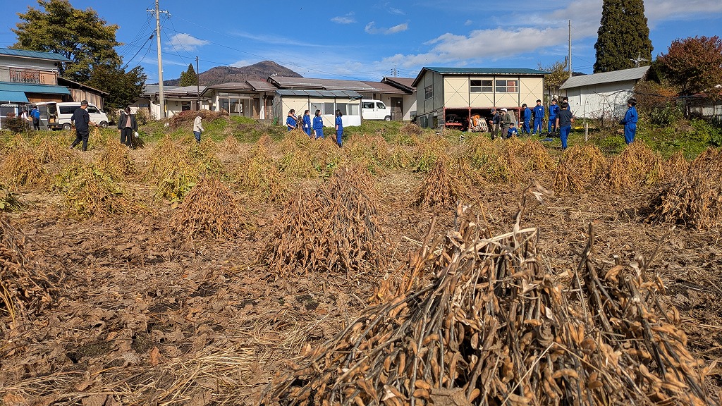 11月は大豆や野菜の収穫時期。収穫を予定していた日は概ね暖かく穏やかな天気となり、無事に収穫作業を終えることができました。