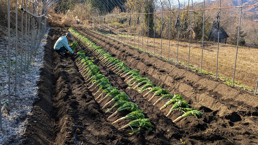 収穫後、間もなくして戸隠大根の採種を行うための母本の定植作業を行いました。信州伝統野菜の1つとして、こういった採種作業のノウハウも受け継いで行きたいと思います。