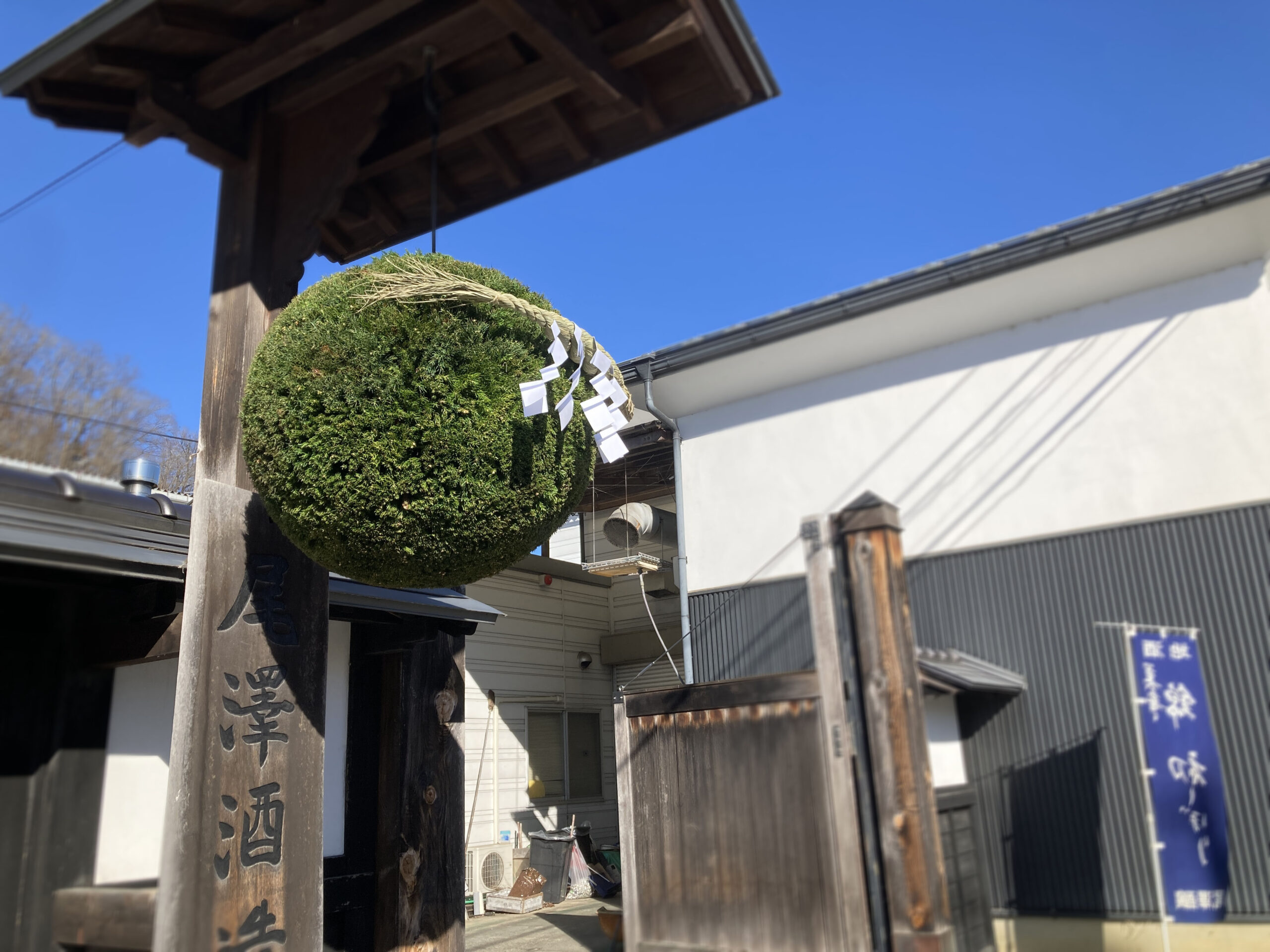 冬の気配が深まる頃、その尾澤酒造場に酒蔵の軒先に、新しい杉玉が吊るされました。