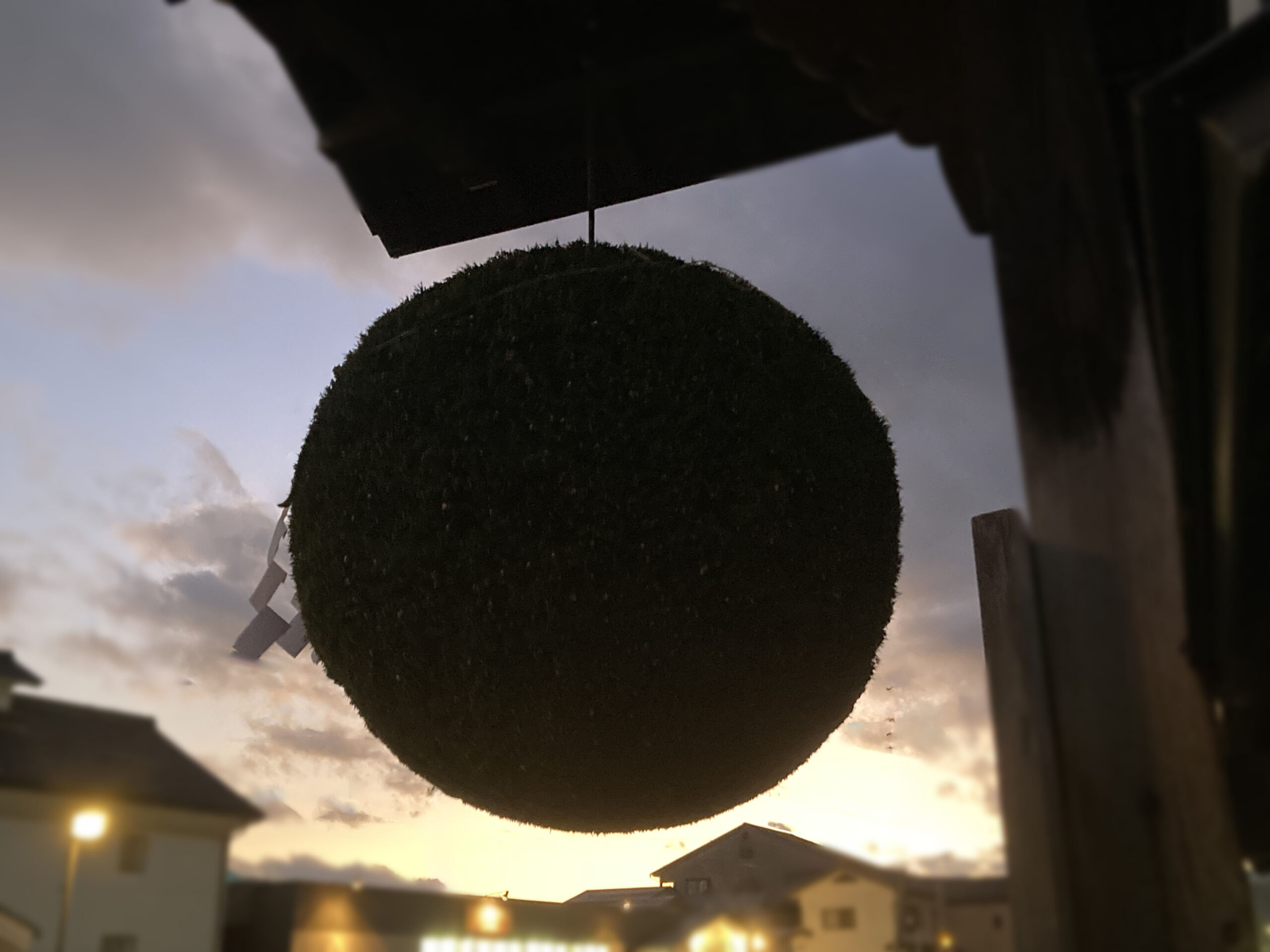 最終調整に入り、ほぼ丸くなってきた杉玉。