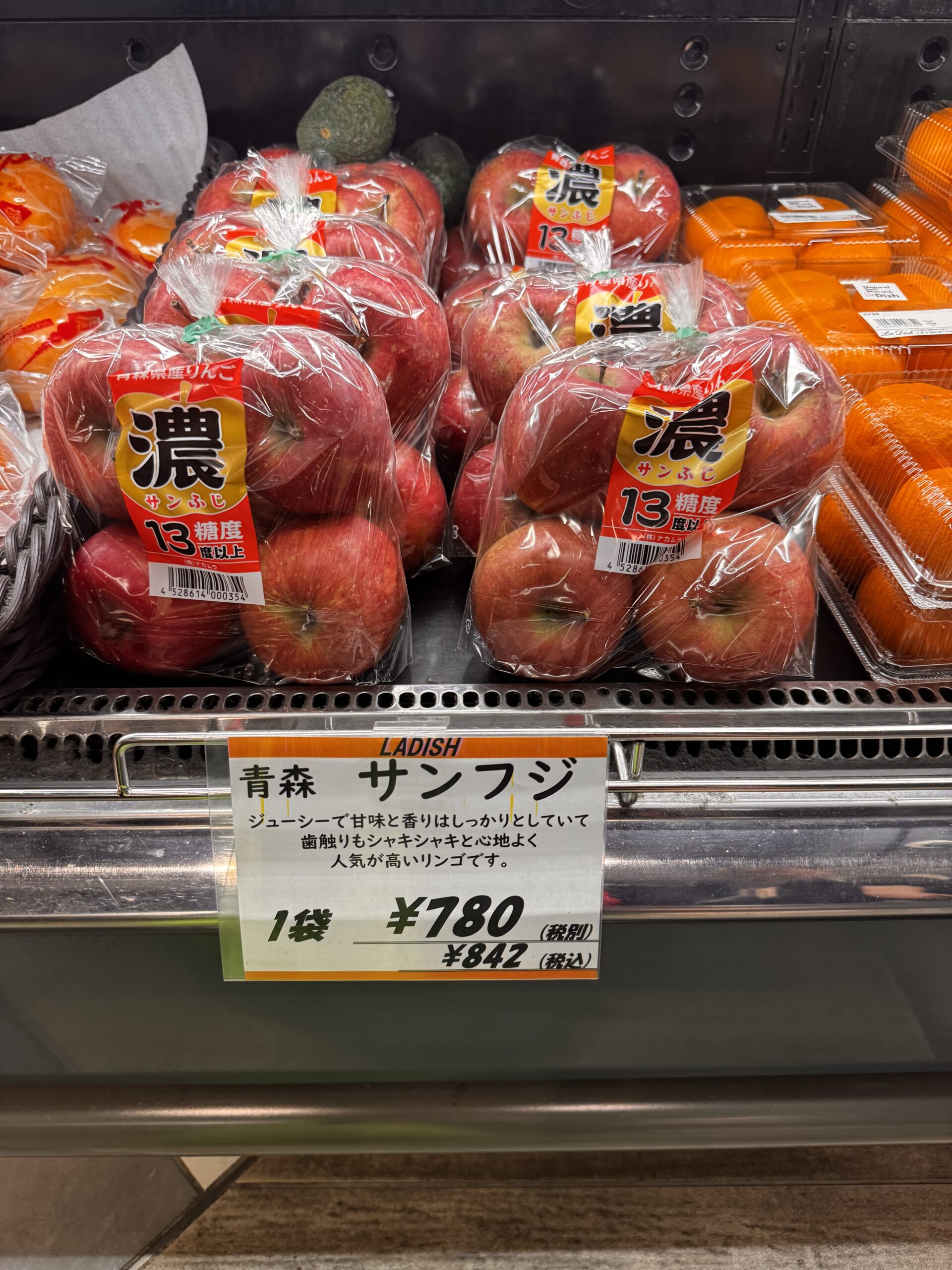 九州地方のお店ではほとんどの林檎が青森県産でした。