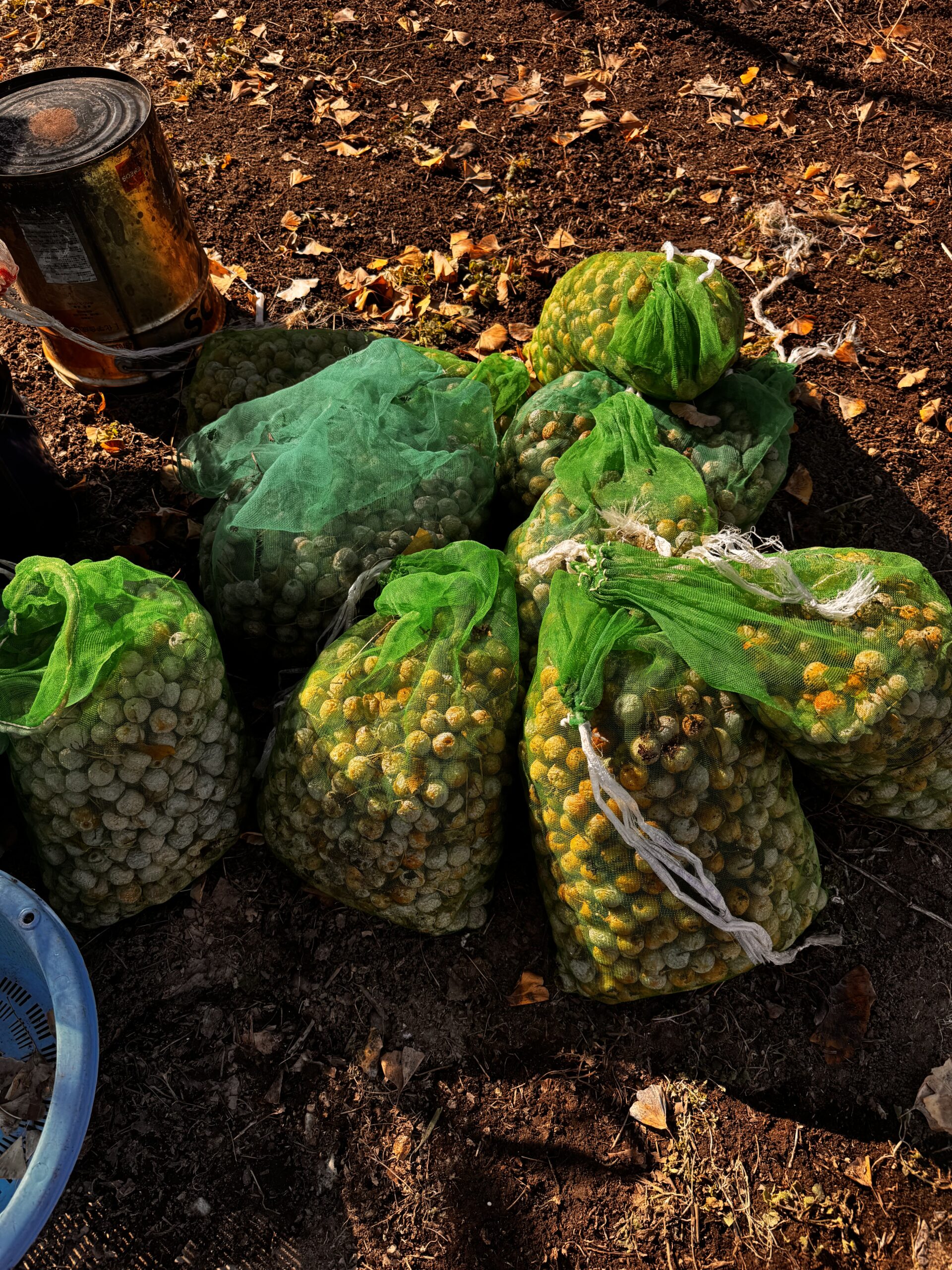 冬季の果樹の農作業は剪定作業ですが、師匠からは2月にやるとのことで、地域の方の圃場でひたすら銀杏取りと銀杏洗いをさせて頂きました。