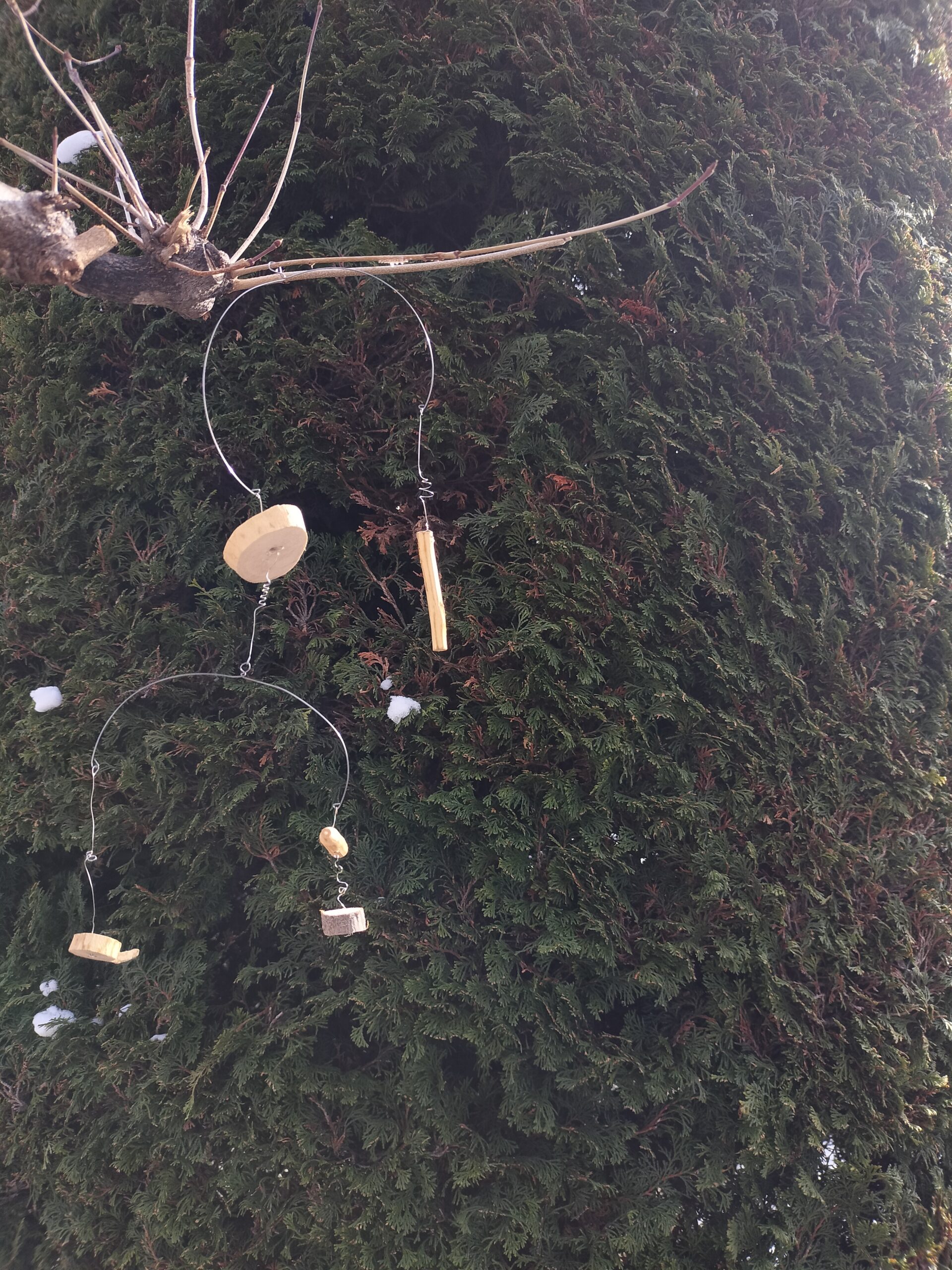 色んな太さや形の剪定枝。ワイヤーに吊るされて、ゆらゆらと気持ちよさそうに宙を泳ぐ姿がかわいいなと思い、ワークショップ体験に挑戦することにしました♪