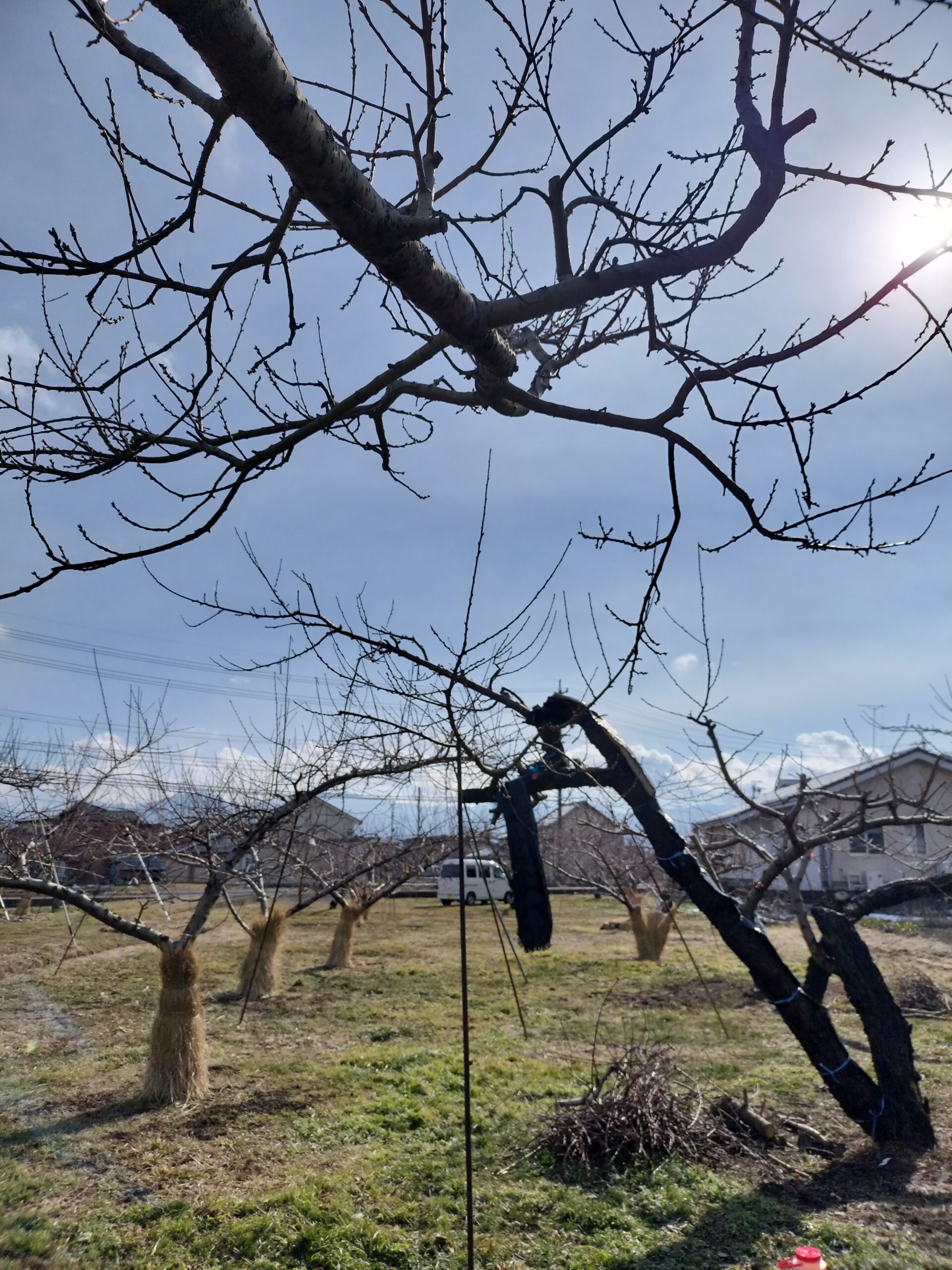 川中島の桃畑では、あちらこちらで枝の絨毯や山ができているはず。去年は師匠にみっちりくっついてやっていた剪定も、今年は実践を中心にしながらわからないことが出ると師匠の元へ通う日々。