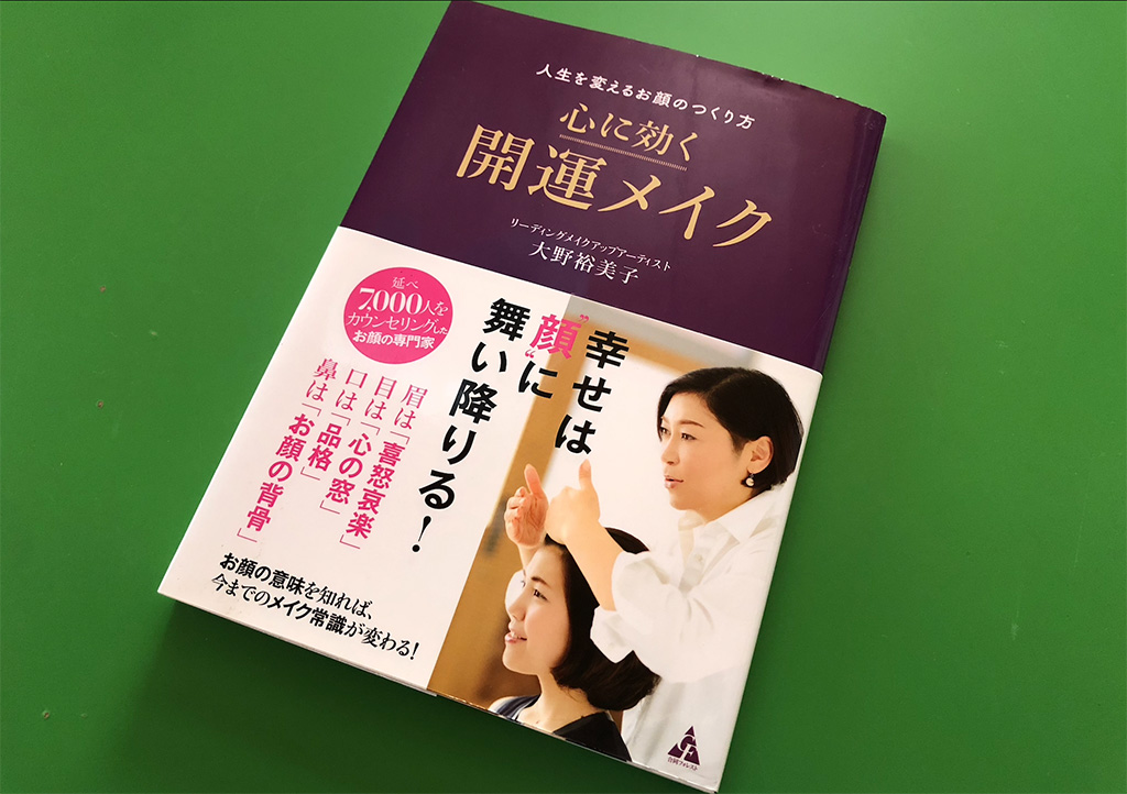 顔立ちや表情から性格や運勢などを読み解く人相・観相学という学問があります。それを現代の生活に取り入れやすくしたフェイスリーディング法をもとに大野さんが生み出したのが「大野裕美子の開運メイク®」です。リーディングメイクアップアーティストとしてパーソナルレッスンや開運メイクのアドバイス、養成講座なども全国で開催。その極意をまとめたのが「人生を変えるお顔のつくり方 心に効く開運メイク」です。