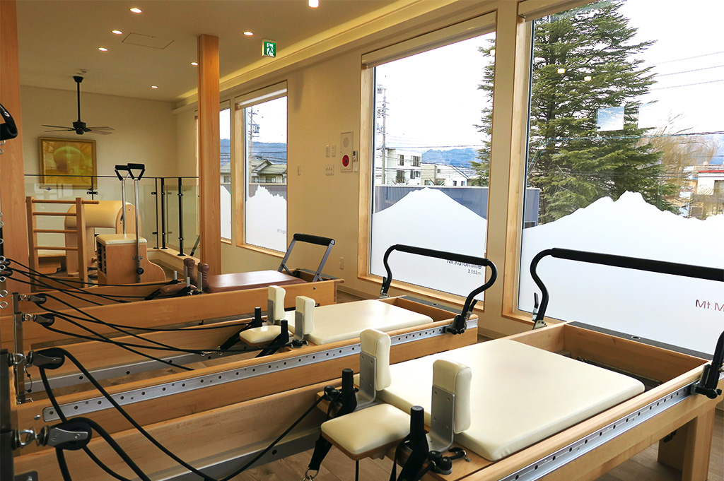 Menotes最大の特徴は、なんといっても全国初となる医療提携スタジオにあります。スタジオは義理の弟が営む「みすずレディースクリニック」に隣接し、産婦人科や整形外科との密な協力体制を築いています 。さらには長野県唯一の公式ホストスタジオとして、ピラティス国際ライセンス資格取得が可能なトレーニング・センターとして登録。指導者育成にも熱心に取り組んでいます。スクールに通う人の中には理学療法士や作業療法士といった国家資格を保持する人も多く、機能改善に役立つものとしてピラティスを学んでいます。
